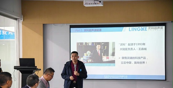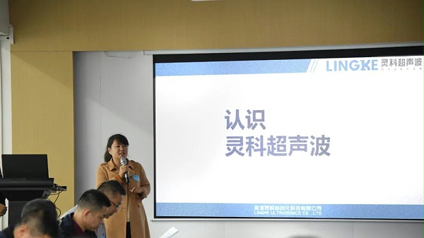 靈科超聲波行政總監江靜女士致歡迎詞表示:熱烈歡迎各位嘉賓的到來,十分高興大家蒞臨靈科超聲波考察交流,互相溝通學習,希望之后能與各企業發展相互間的友好合作關系。