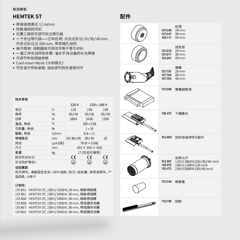 特點:焊接速度高達12 m/min;風機性能強勁,操作簡單;無需工具即可調節折邊導引器;焊接支持閉合式折邊、開放式折邊、帶穿繩孔結構;可調節所有焊接參數,自由調節快速鎖閉件;
